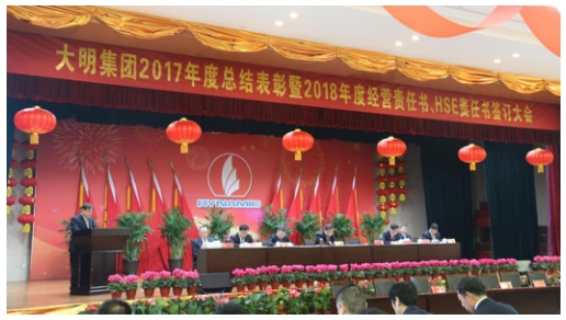 1月16日,集团公司在东城大明工业园多功能厅召开了2017年度总结表彰暨2018年度经营责任书、HSE责任书签订大会。集团公司领导、各子公司经营班子、先进员工代表、核心员工代表、机关人员等280余人参加了会议。